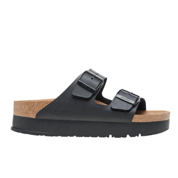 The BIRKENSTOCK Arizona is a genuine classic with its timeless design. Here, Papillio presents the two-strap sandal with a trendy platform sole. This popular sandal has also been given an update in new vegan materials. Shown in Birko-Flor.